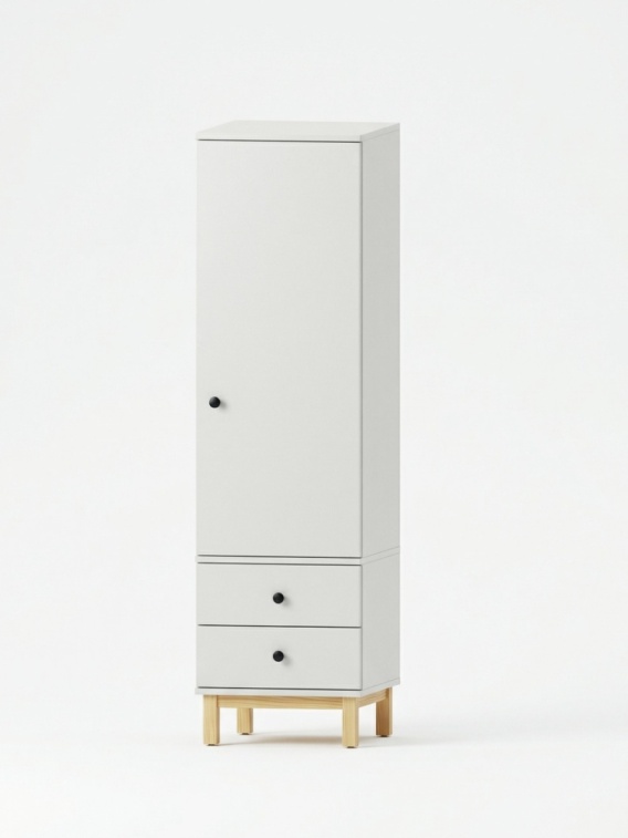 Wąska szafa-słupek z dwiema szufladami, którą zamówisz na wymiar. Kilka prostych kroków dzieli Cię od szafy idealnej: wybierz wymiary, kolor, rodzaj podstawy, wyposażenie: półki lub drążek i sposób otwierania szafy.