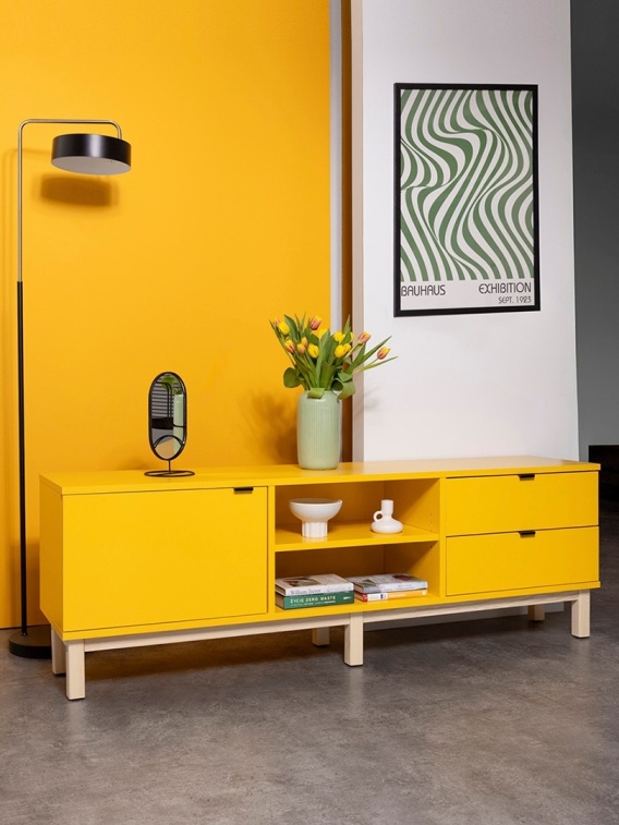 Organizacja Trzy opcje wyposażenia każdego z modułów (otwarte półki, dwie szuflady, zamykana szafka) pozwalają na stworzenie funkcjonalnej przestrzeni do przechowywania. Równy podział szafki pozwala na samodzielną zmianę kolejności modułów.