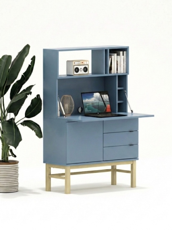 Oszczędność przestrzeni Sekretarzyk łączy w sobie funkcje biurka, komody i regału.